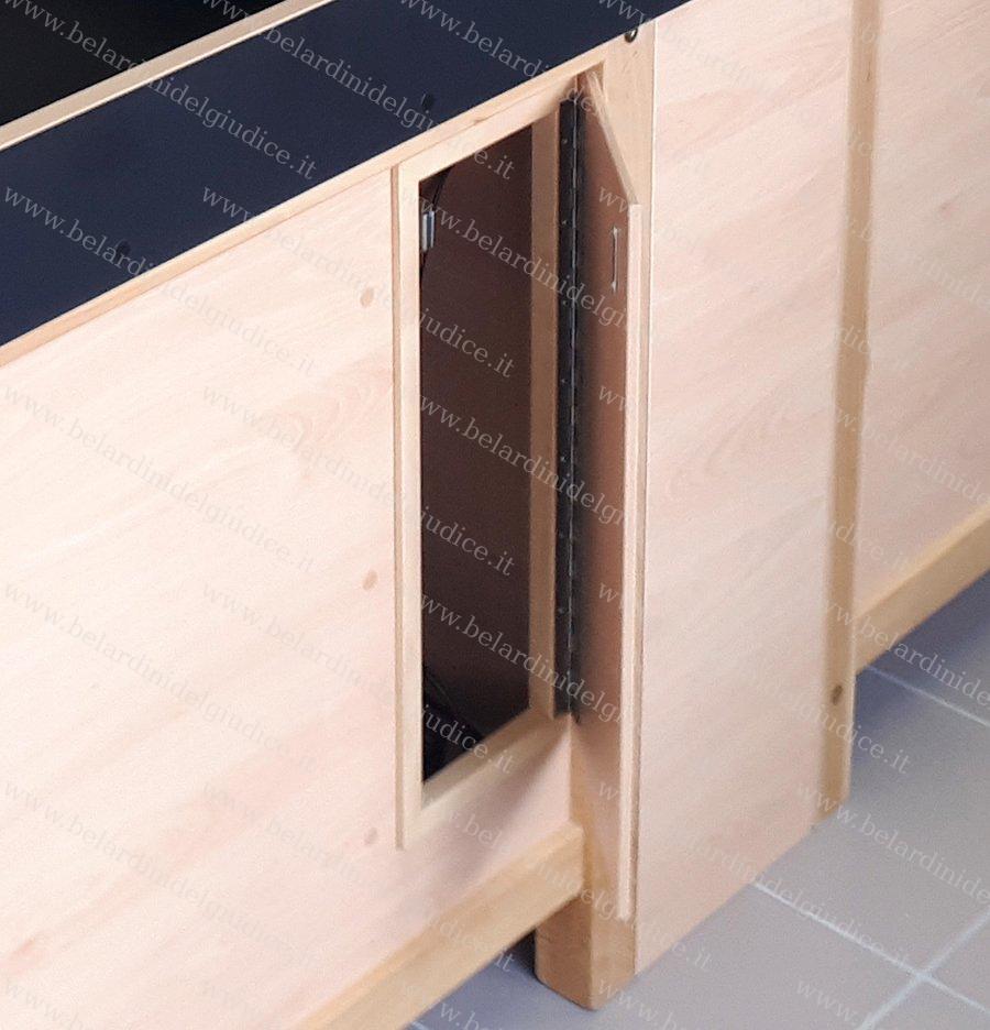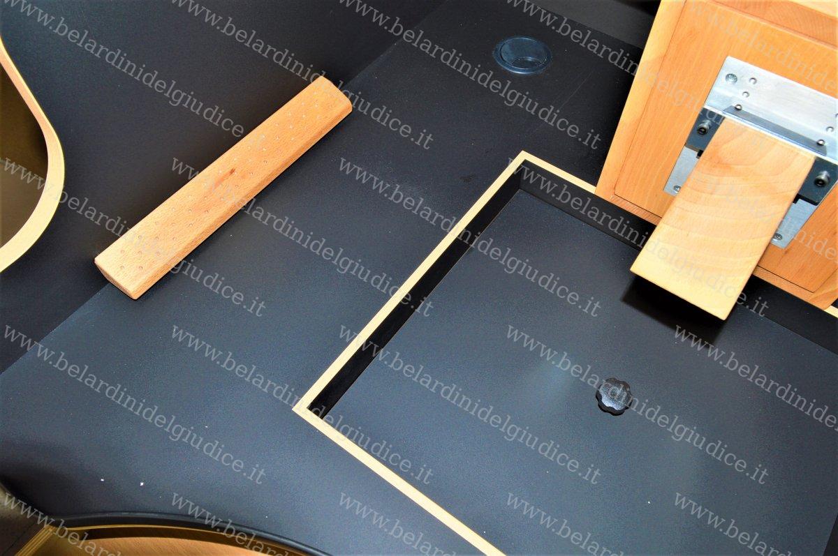 • piano di lavoro 40 mm di spessore in multistrato ricoperto in laminato HPL (materiale stratificato ad alto spessore) nero opaco;