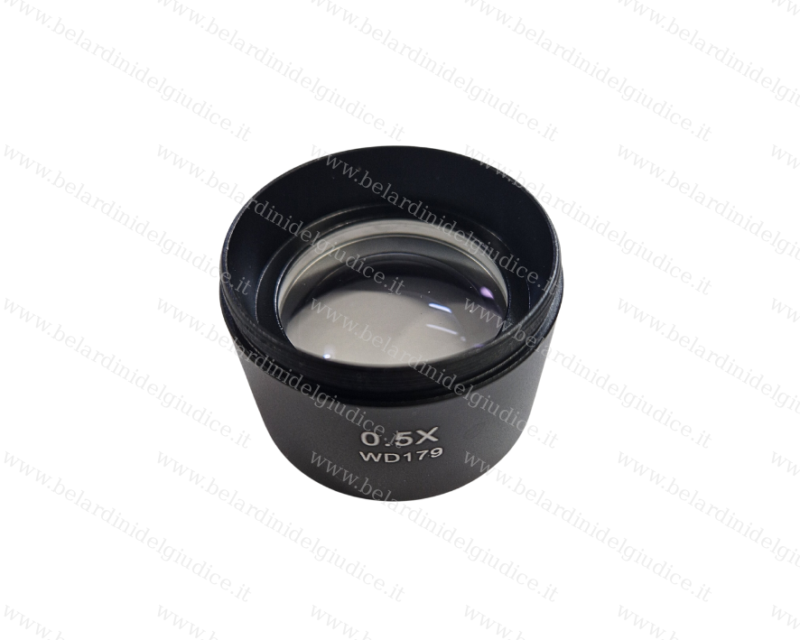 La lente 0,5X dimezza gli ingrandimenti dell'ottica principale e secondaria, ma ne raddoppia la distanza di lavoro, è molto utile quindi per utilizzi su stativi a sbalzo e per lavori di mineralogia, oreficeria o controllo qualità.