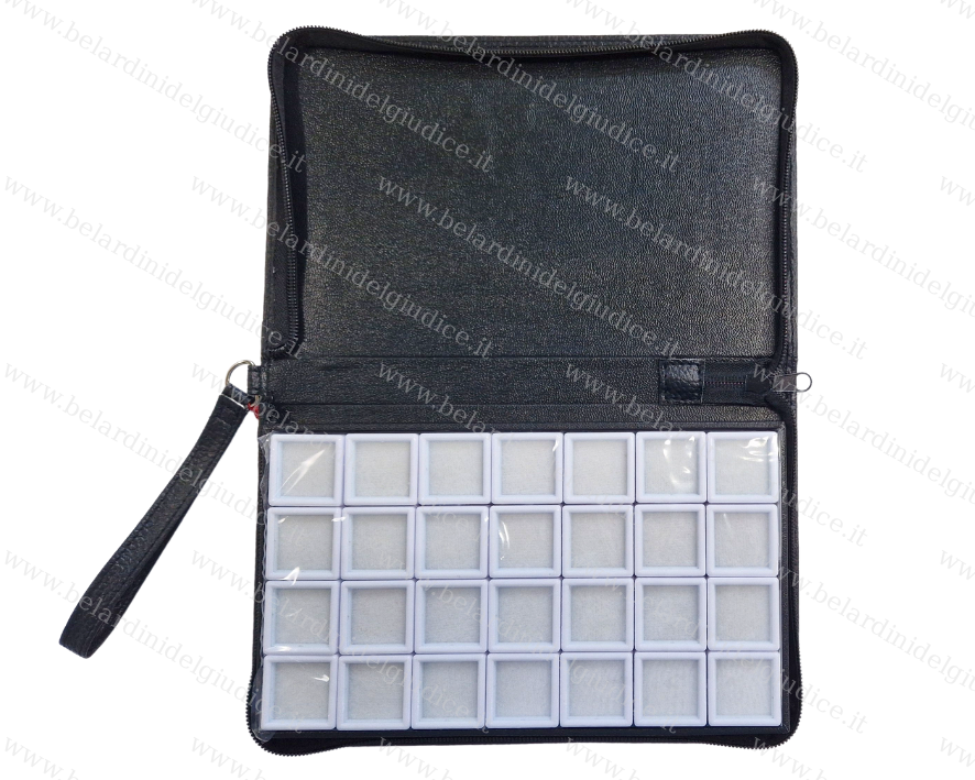 Astuccio in similpelle completo di 28 scatoline 3x3cm