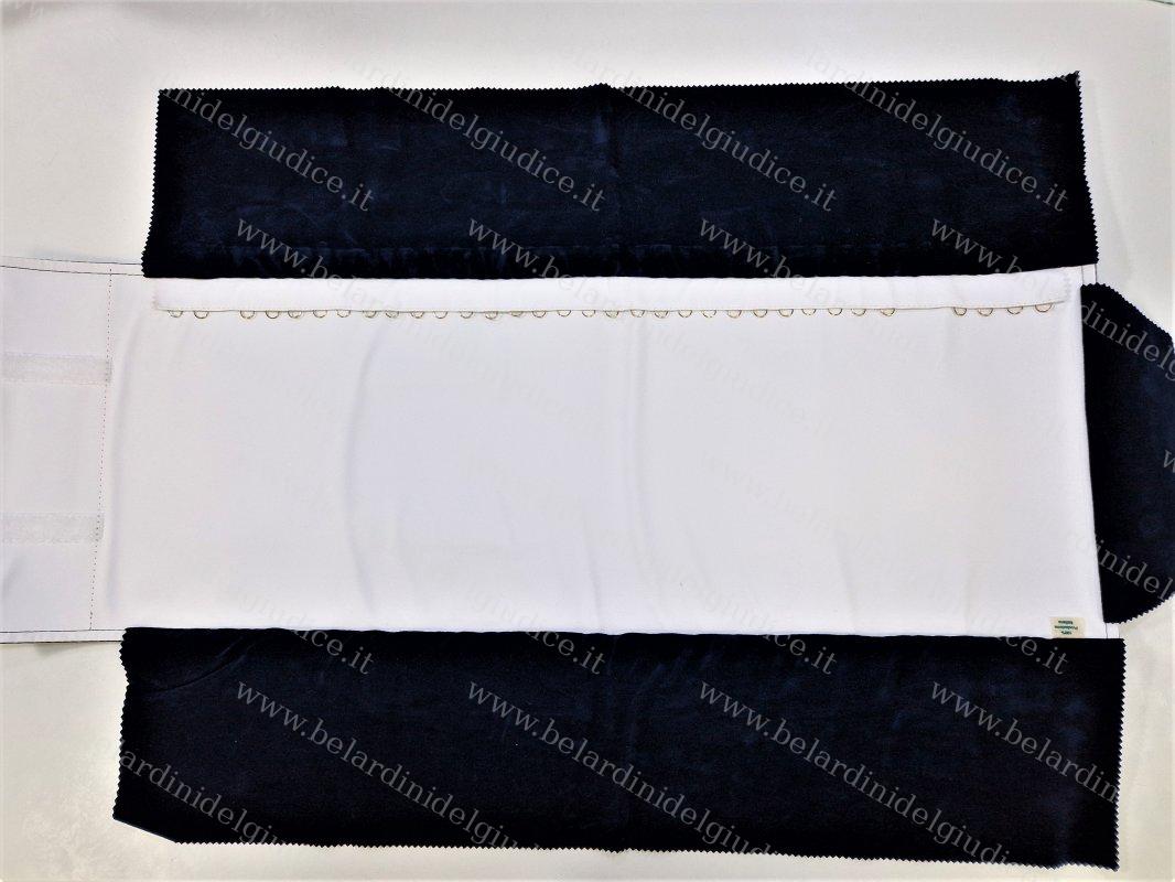Realizzato in similpelle maya color blu, con gli interni bianchi e le alette in tessuto floccato color blu e con 36 anellini.