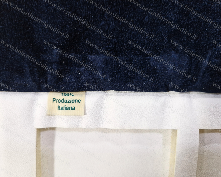Realizzato in tessuto maya color blu, con gli interni in similpelle bianco e le alette in tessuto floccato color blu e con caselle in gommapiuma.