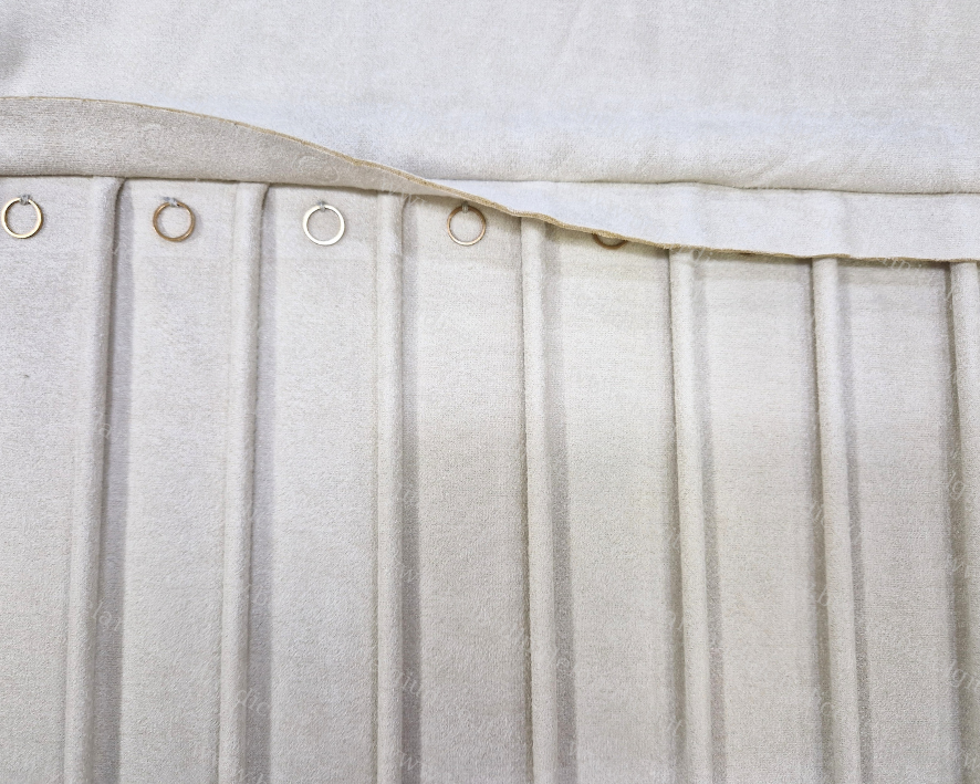Questo rotolo è stato realizzato in similpelle setificata Lucerne color chiampagne, con gli interni e le alette in microfibra ultraleggera color avorio.