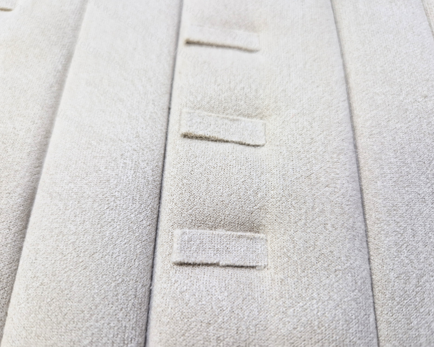 Questo tartufo è stato realizzato in similpelle setificata Lucerne color chiampagne, con gli interni e le alette in microfibra ultraleggera color avorio.