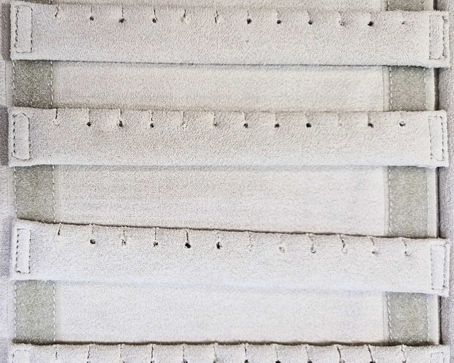 Rotolo champagne interno avorio con strisce forate per orecchini