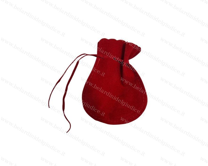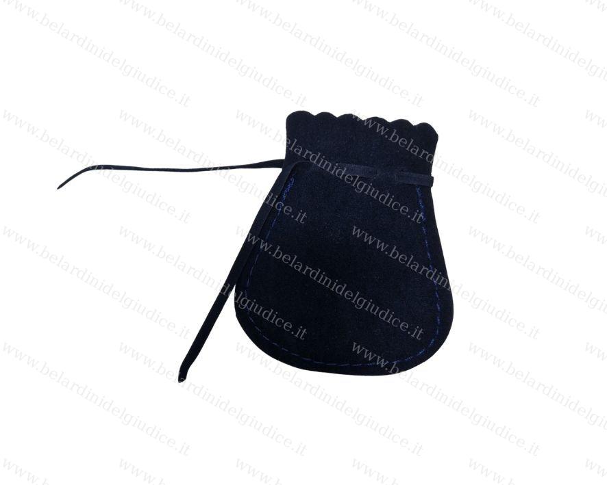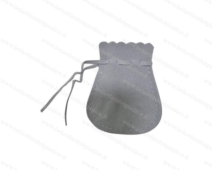 Sacchetto in tessuto floccato a forma di anfora, con laccetto floccato e i contorni ricuciti.