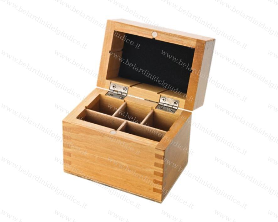 Scatola in legno vuota con 5 scomparti per saggi e pietre.