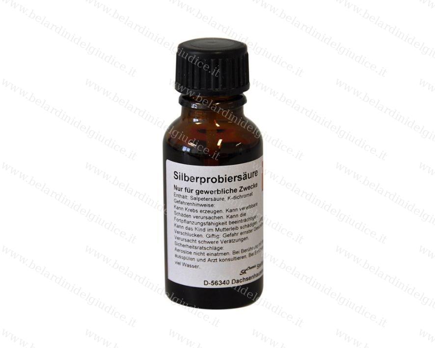 Acido reagente per testare argento in boccetta a gocce con paletta forata.