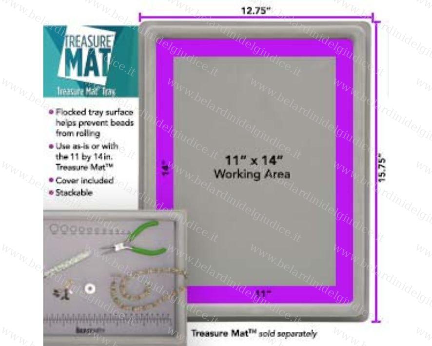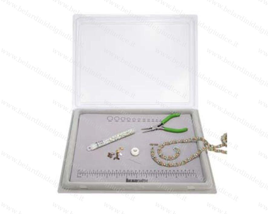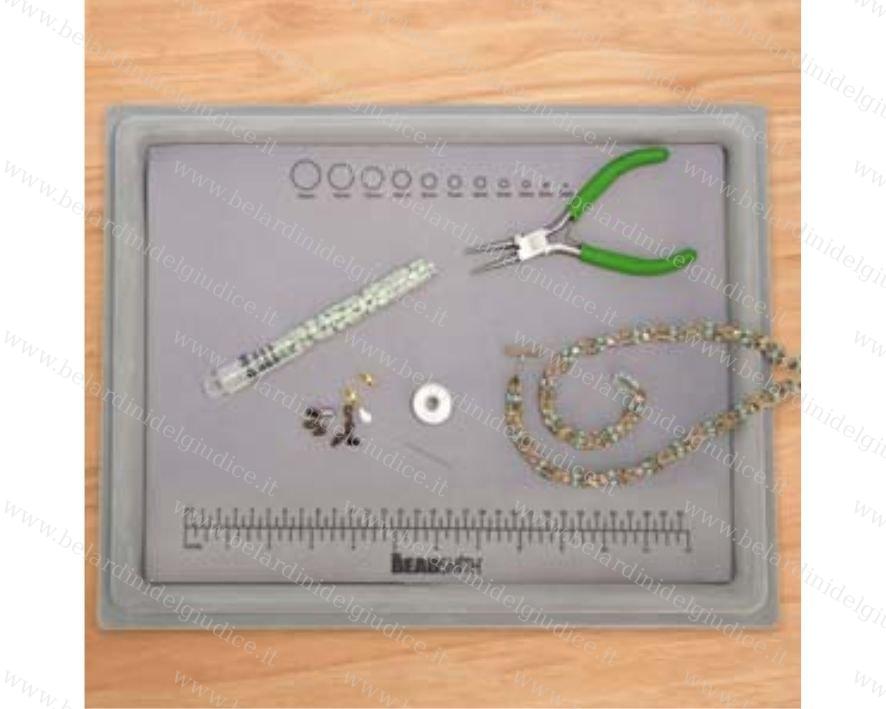 La superficie floccata del vassoio aiuta a prevenire il rotolamento delle perline.