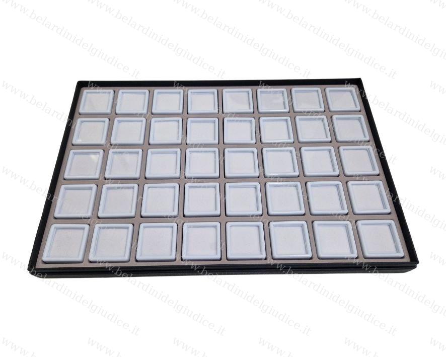 Vassoio con 40 scatolini bianchi per pietre 3x3 cm