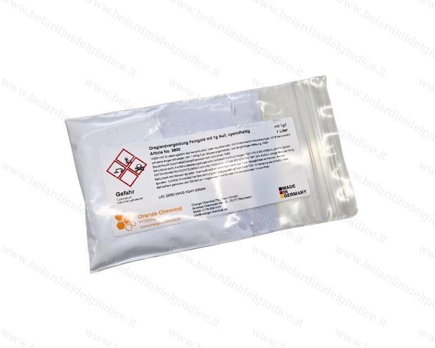 Doratura oro brillante in polvere da sciogliere in acqua distillata per bagno galvanico.