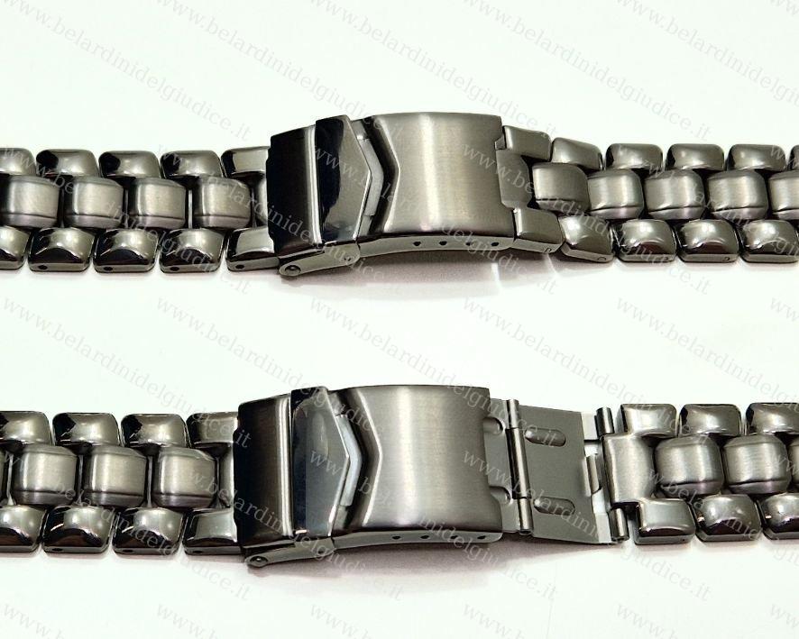 Cinturino bracciale solido in acciaio con chiusura di sicurezza e prolunga sub.