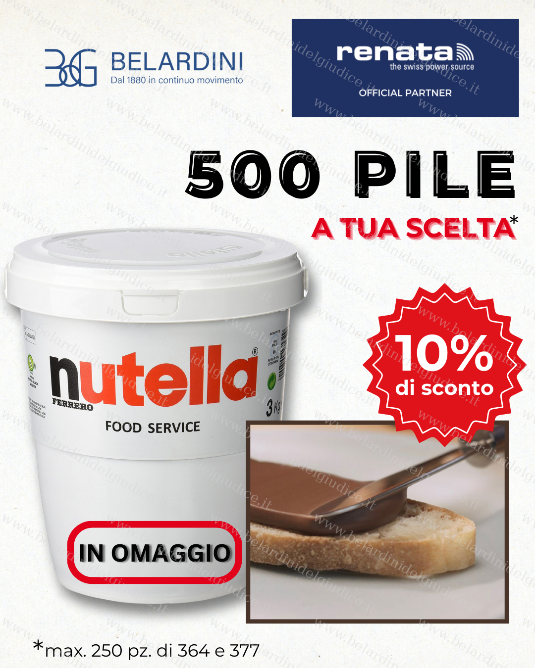 PROMO 500 batterie Renata + Barattolo 3 kg Nutella