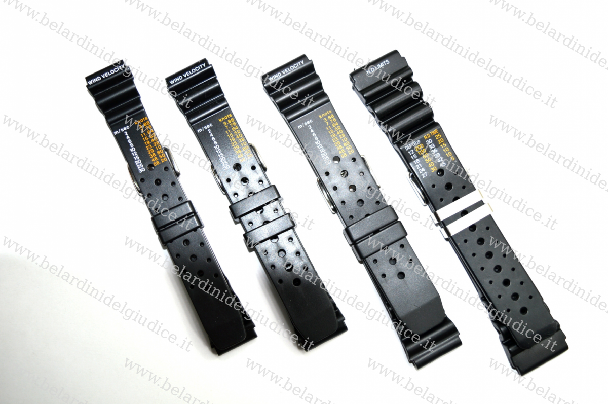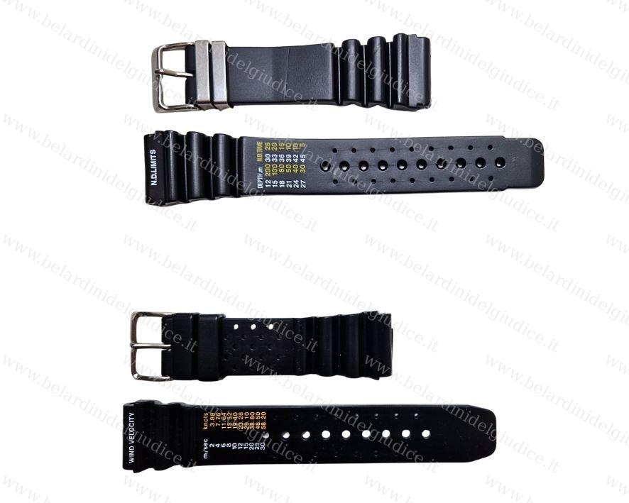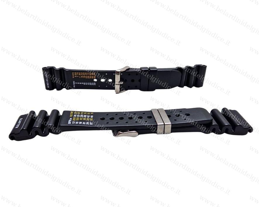 Cinturino in gomma tipo CTZ con passanti in gomma (misure 18 - 20 - 22 mm) e in acciaio (misura 24 mm).