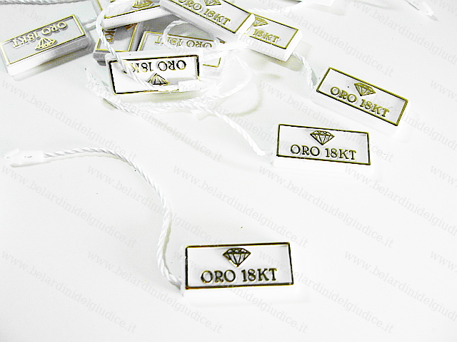 Colore: bianco con scritta "ORO 18 KT" + logo diamante.