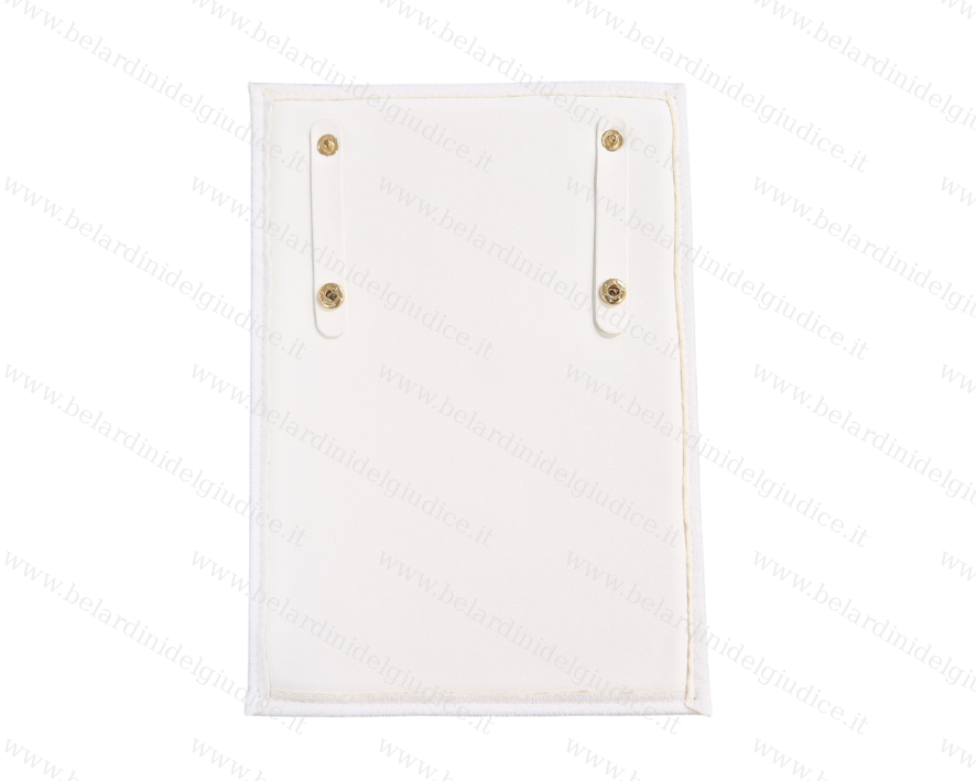 Scheda rivestita similpelle lavabile, con agganci per collana.