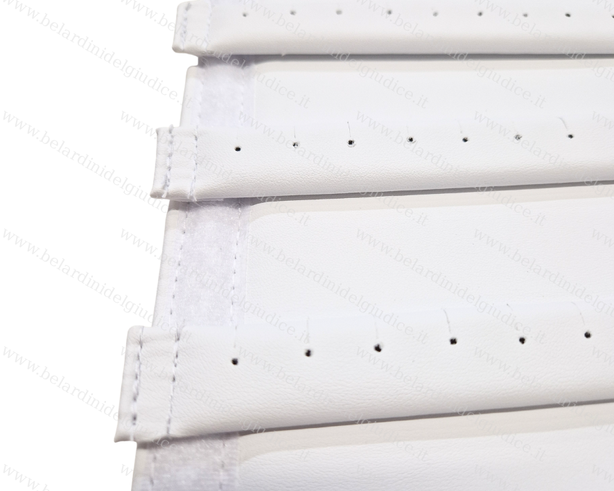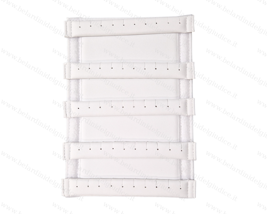 Scheda rigida rivestita similpelle lavabile, con traversini rimovibili con tagli e fori per orecchini.