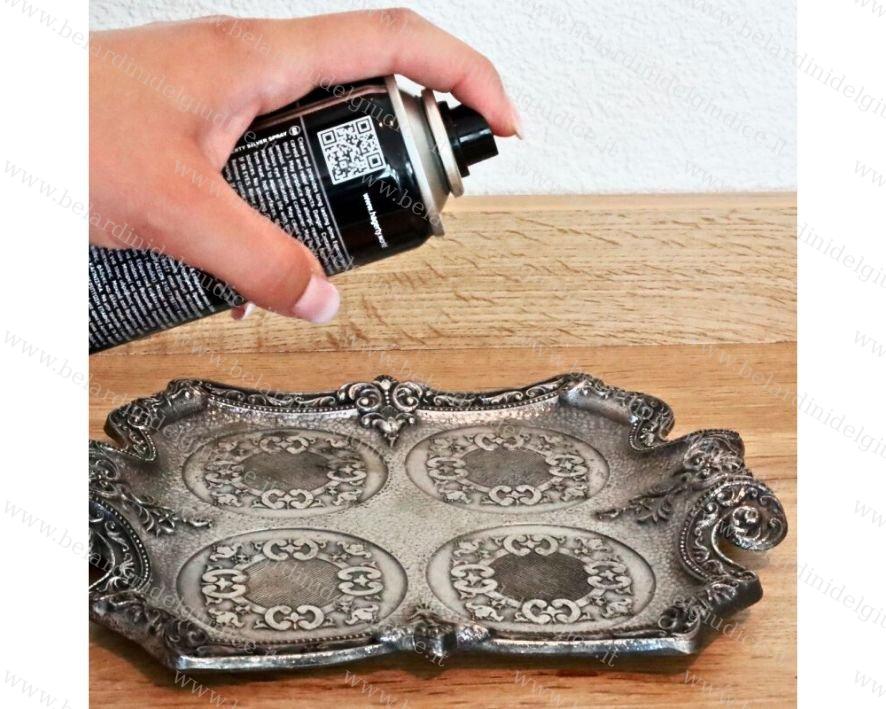 Silver Spray fa brillare vasi, cornici e altri oggetti d'argento o di metallo argentato opachi. Si prende cura in profondità dell’argento annerito. Protegge dall'ossidazione per molte settimane e rimuove lo sporco da qualsiasi oggetto e accessorio da arredamento d'argento o placcato argento. Lo spray applica uno strato sottilissimo di prodotto sulla superficie ed è quindi ideale per la cura degli oggetti cesellati e incisi.
