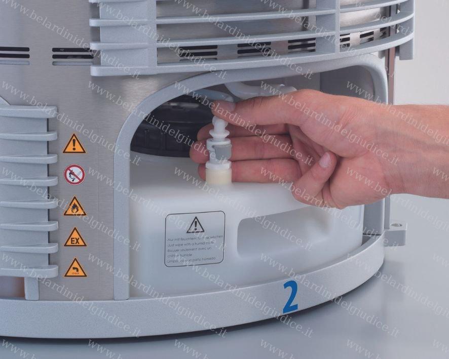 • Contenitore dei fluidi facile da cambiare, facile da risciacquare; filtro antiparticolato integrato per prolungare la durata delle soluzioni di pulizia e risciacquo;