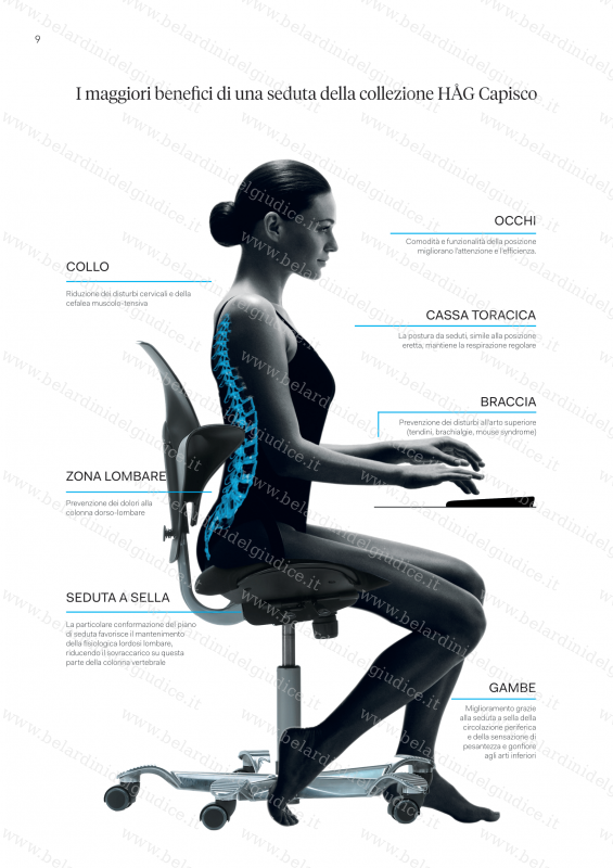 • la seduta a sella riduce il sovraccarico sulla parte inferiore della colonna vertebrale;