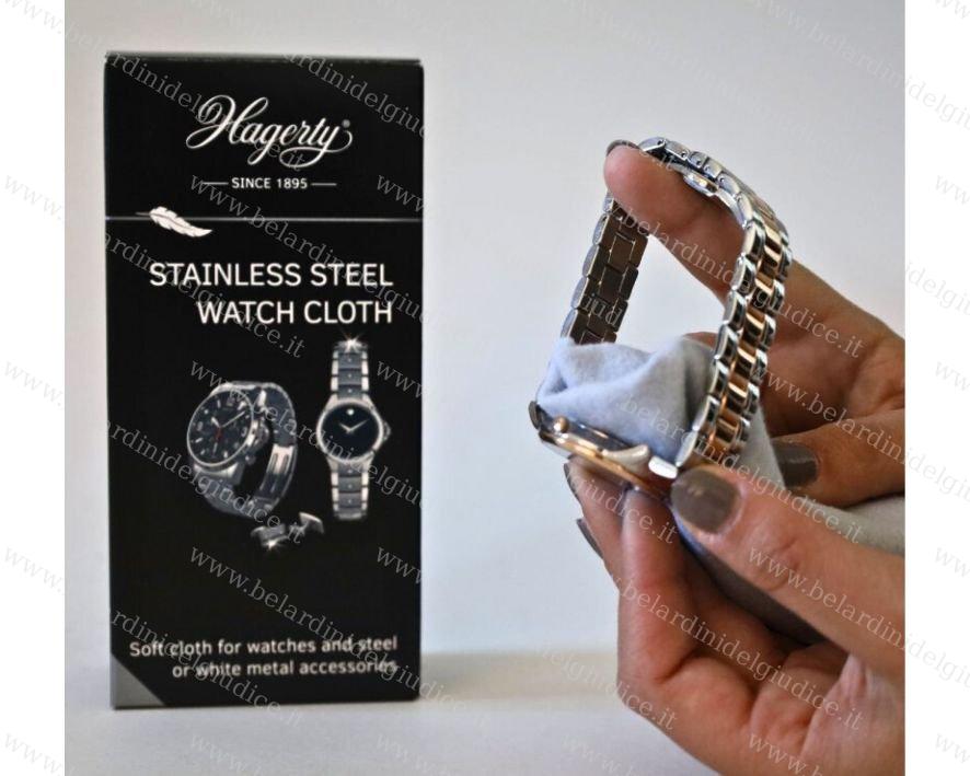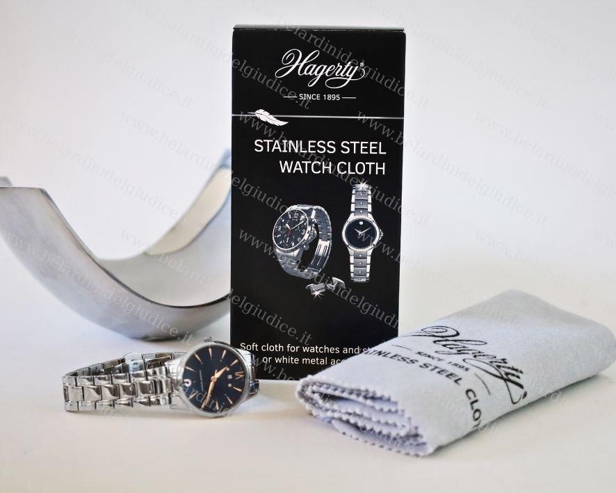 Tessuto impregnato per pulire orologi e ed accessori personali in acciaio inossidabile e altri metalli.