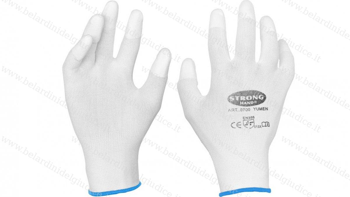 Le punte delle dita sono rivestite in poliuretano bianco che garantisce una presa sicura e una buona sensibilità tattile.